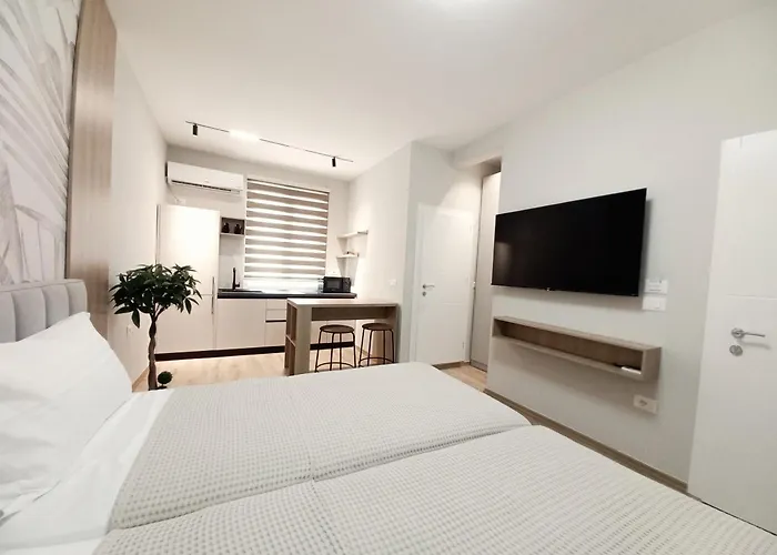 Az ingatlanban egy konyhát is találhat. Az apartman a közelben található a Stadiumi Dinamo buszmegállótól.